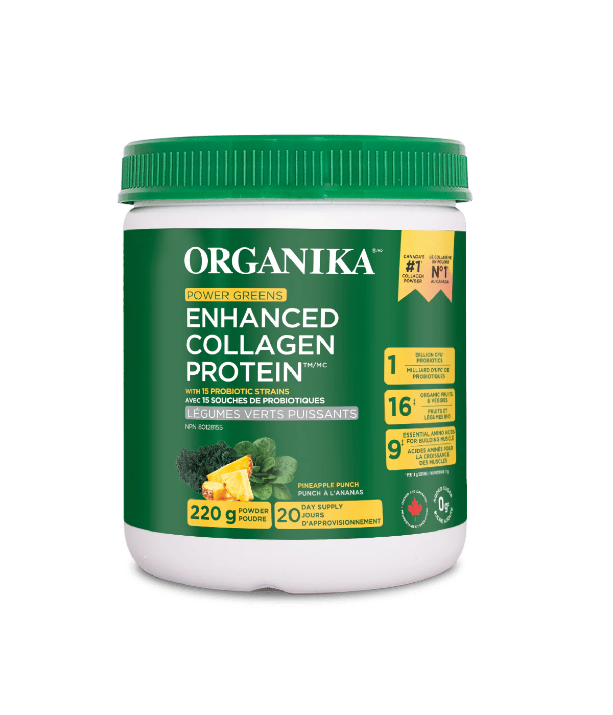Organika® Enhanced Collagen Protein™ Power Greens with Probiotics is your complete whole-body booster. Your whole body will benefit from this powerful, nutrient-rich blend. Add into a glass of cold water or make a smoothie and revitalize.