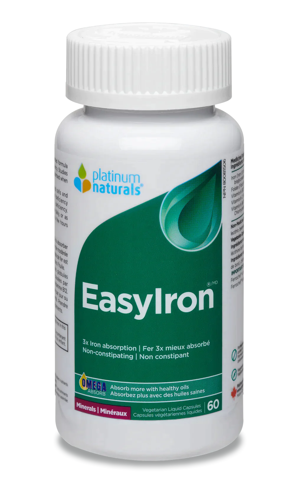 EasyIron is a gentle and non-constipating iron formula. It combines iron bisglycinate, which is 4.5x better absorbed than most other forms of iron, with key co-factors and our Omega Absorb™ delivery system for 3x greater absorption due to the suspension in healthy oils.