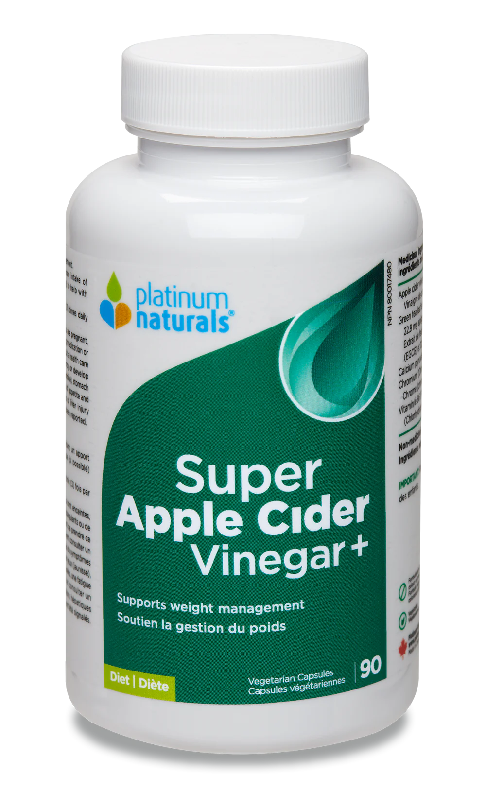 Super Apple Cider Vinegar+ combines apple cider vinegar with green tea, calcium pyruvate, chromium, and vitamin B6 to support healthy weight management