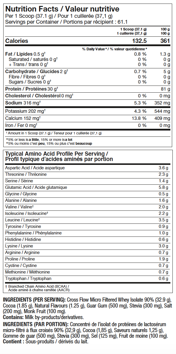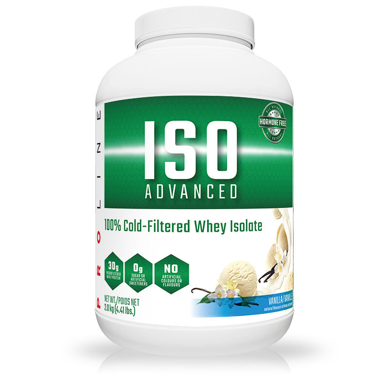 Pro Line Iso Advanced uses only pure Cross Flow Micro Filtered Whey Protein Isolate 90%, no added amino acids, no creamers and no soy. ISO ADVANCED contains 30gr of the highest quality Whey Protein Isolate and is sugar free and low in or fat free.