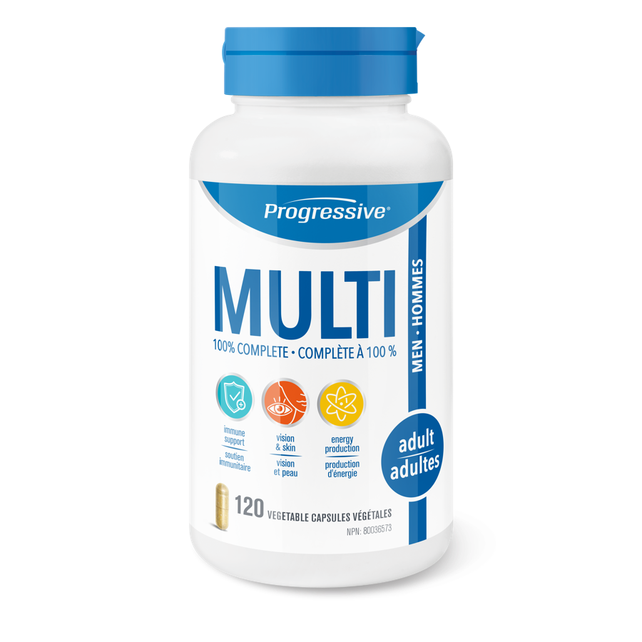 Progressive MultiVitamins for Adult Men contains Hawthorn, Ginko, CoQ1 and mineral citrates as well as Green Food Concentrates. Suitable for those following a vegetarian diet and intended for adult males*.