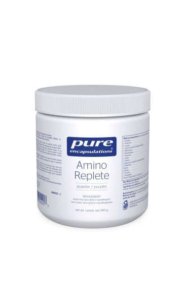 Amino Replete is a complex of free-form amino acids in naturally occurring ratios, providing support for athletic activity and daily wellness. Adequate protein and amino acids are vital for supporting healthy tissue and muscles, as well as overall well-being. They provide important support for athletic training, as supplementation promotes recovery, lessens fatigue, supports muscle performance, and enhances the oxygen-carrying capacity of the bloodstream. Additionally, amino acids support muscle protein synthesis and assist in the building of lean muscle mass when combined with regular resistance training and a healthy balanced diet. Vitamin B6 further supports good health as a cofactor for healthy amino acid metabolism and red blood cell formation.
