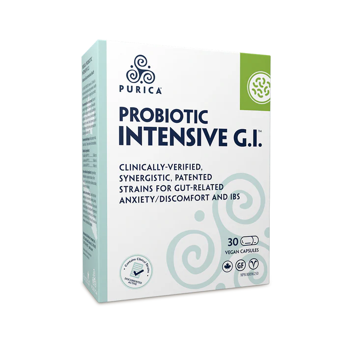 PURICA Probiotic Intensive GI, part of the PURICA Probiotic line, focuses on healthy gastrointestinal function through a patented blend of three unique clinical probiotic strains. Specially formulated for efficacy, it's proven in a published clinical trial to improve life quality in patients with diarrhea-predominant irritable bowel syndrome (IBS), prioritizing the potency and stability of the strains.