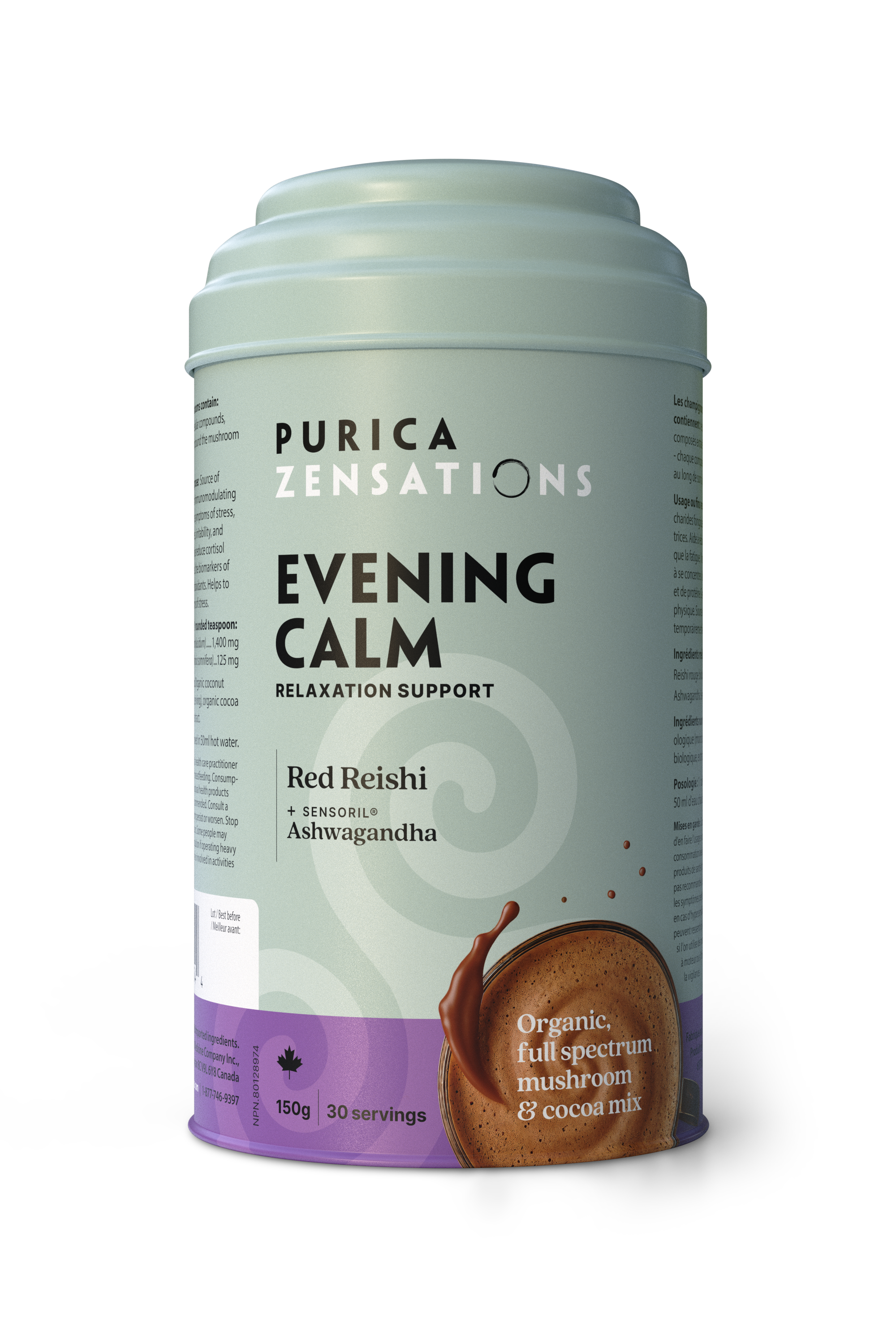 What happens when you mix the chill of Red Reishi and the herb Ashwagandha with the magical taste of cacao? You get the beautiful PURICA Zensation called Evening Calm.