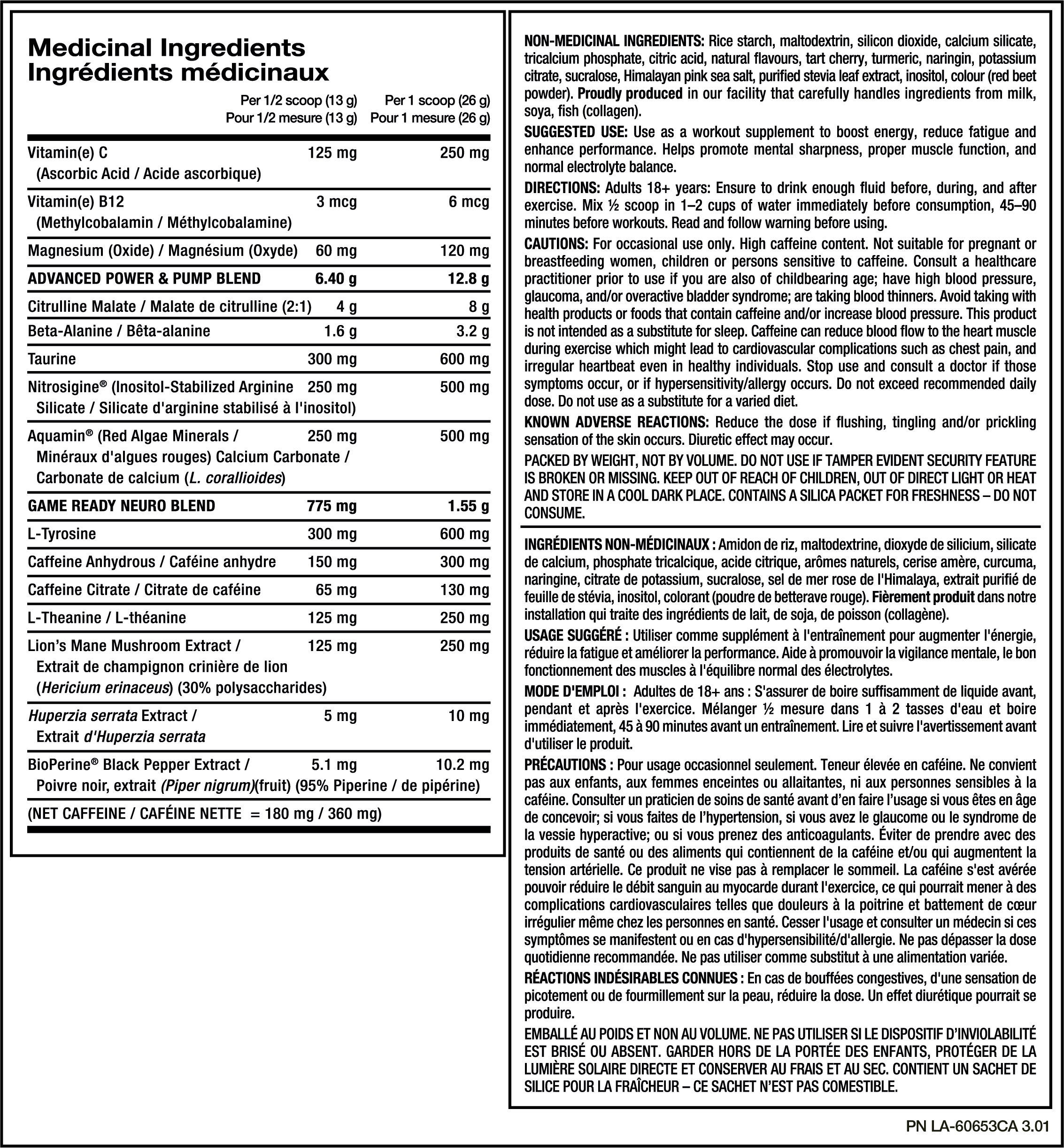 exercise. Mix 1/2 scoop in 1-2 cups of water immediately before consumption, 45-90 minutes before workouts. Read and follow warning before using.