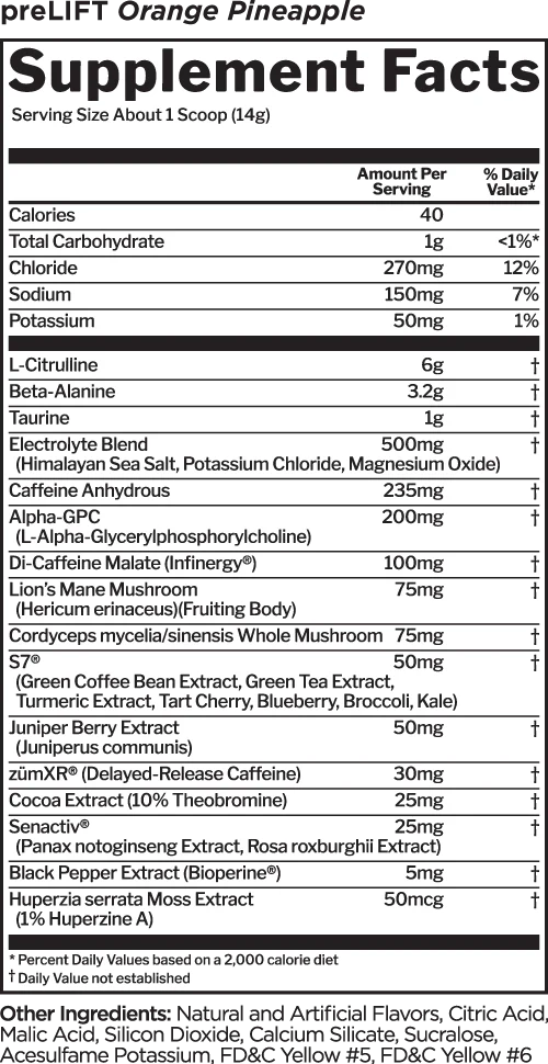 preLIFT™ is a motivating workout partner to help you go longer, train harder, and get more out of any workout, whether cardio, HIIT, or resistance training.^