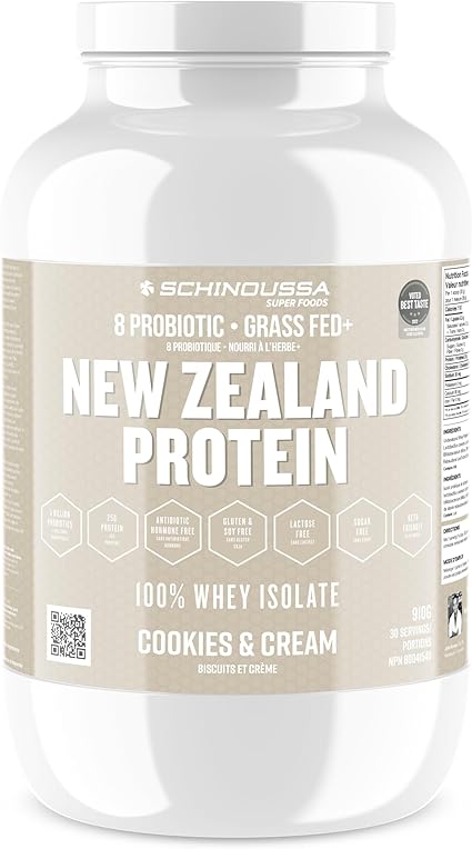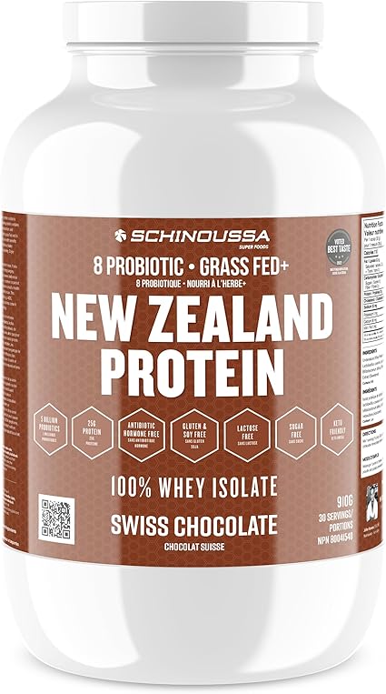 Schinoussa Superfoods New Zealand Probiotic Whey Isolate Peanut Butter Chocolate is a premium protein supplement made from New Zealand’s high-quality, ethically sourced dairy farming milk.