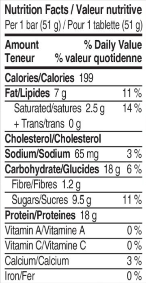 - A high protein bar with a caramel layer with peanuts and coated in milk chocolate
