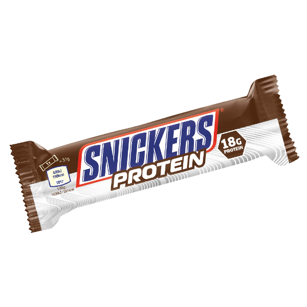 You can have all the great taste you love in a Snickers Protein bar, with 18g of protein.