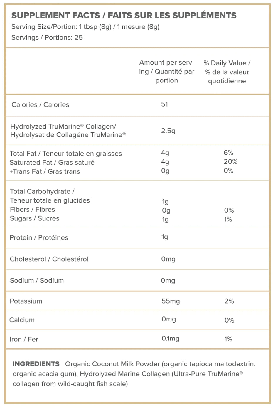 Certified Organic Coconut Milk Powder (Organic Tapioca Maltodextrin, Organic Acacia Gum, Carrageen Free), 100% Hydrolyzed Collagen (Ultra-Pure Tru Marine Collagen from Wild-Caught Fish Scale)