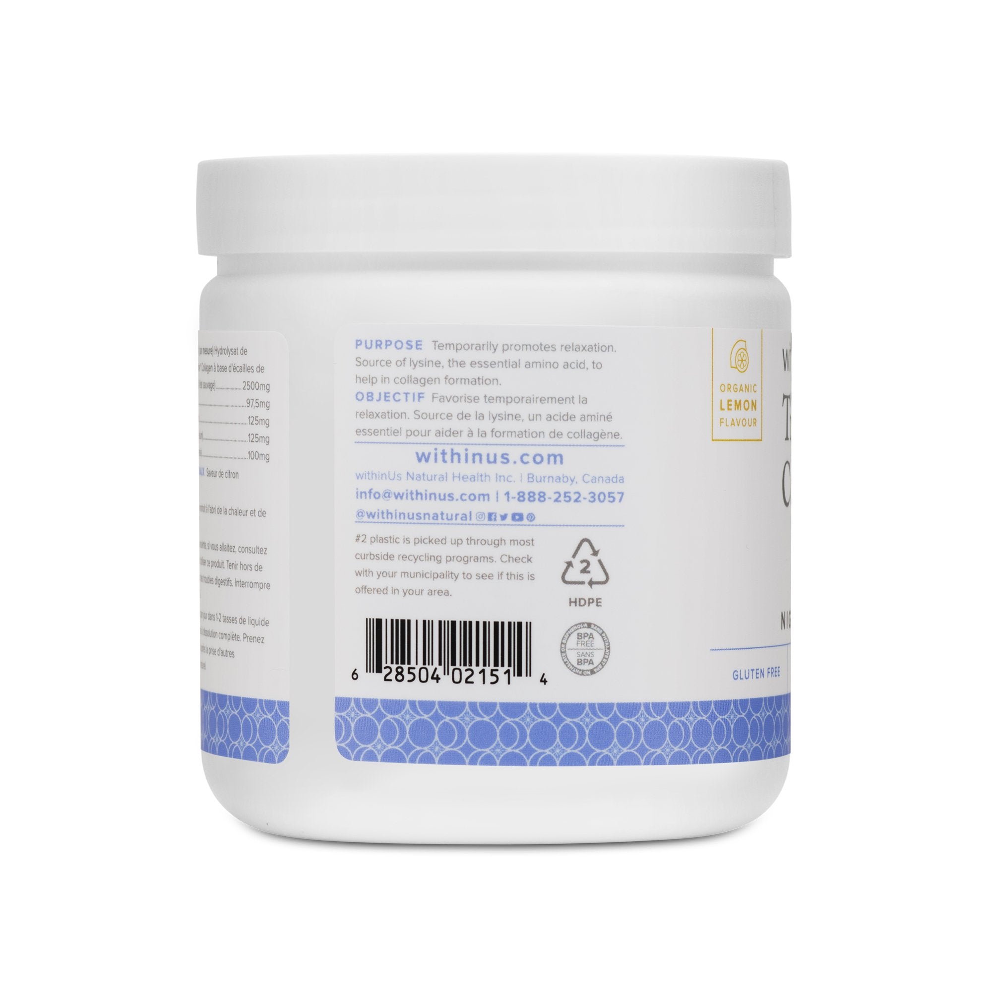 withinUs TruMarine Collagen + Magnesium promotes relaxation and full-body repair.* The exclusive combination of Magnesium Citrate and Magnesium Bisglycinate, plus the amino acid, L-theanine work together to promote relaxation and restful sleep.* Magnesium is necessary for the formation of bone, teeth, and for normal nerve and muscle function.*