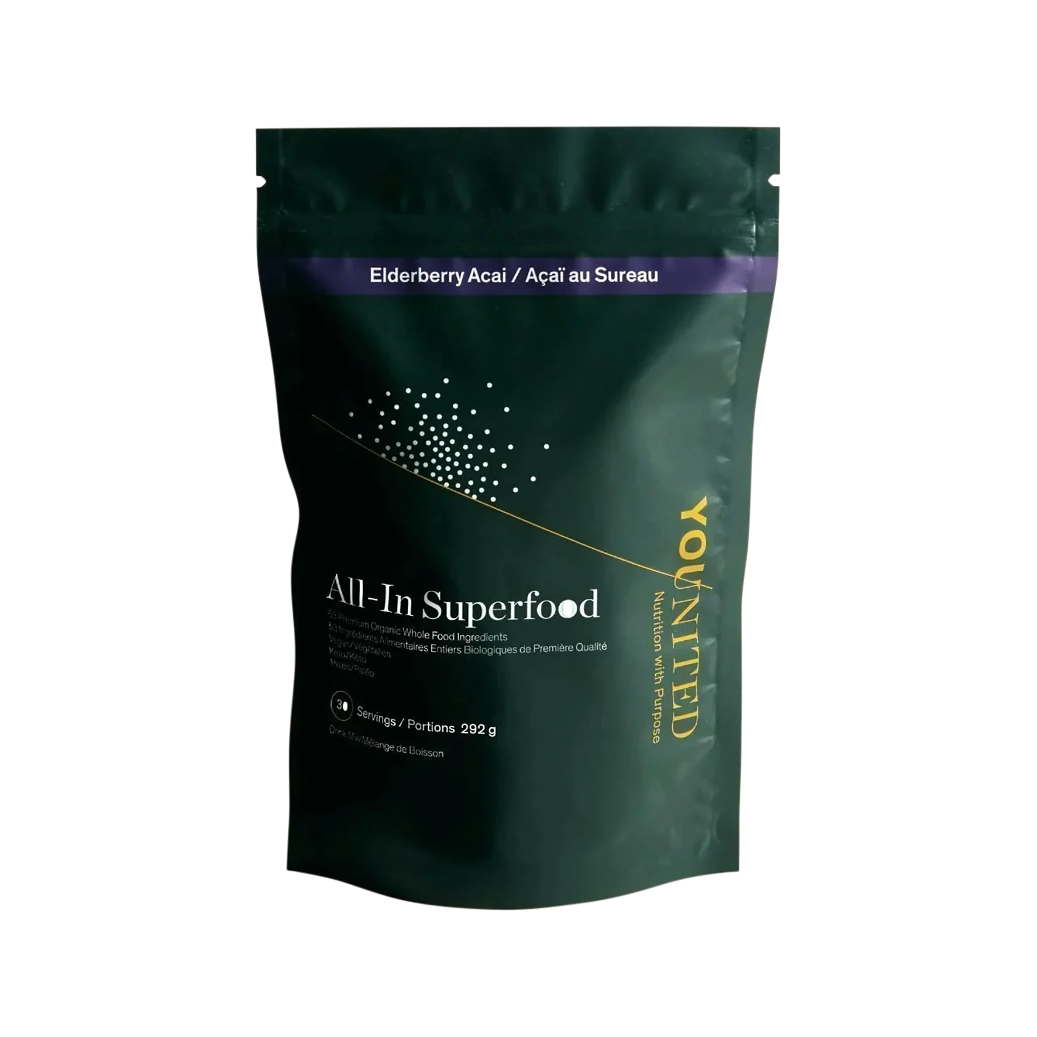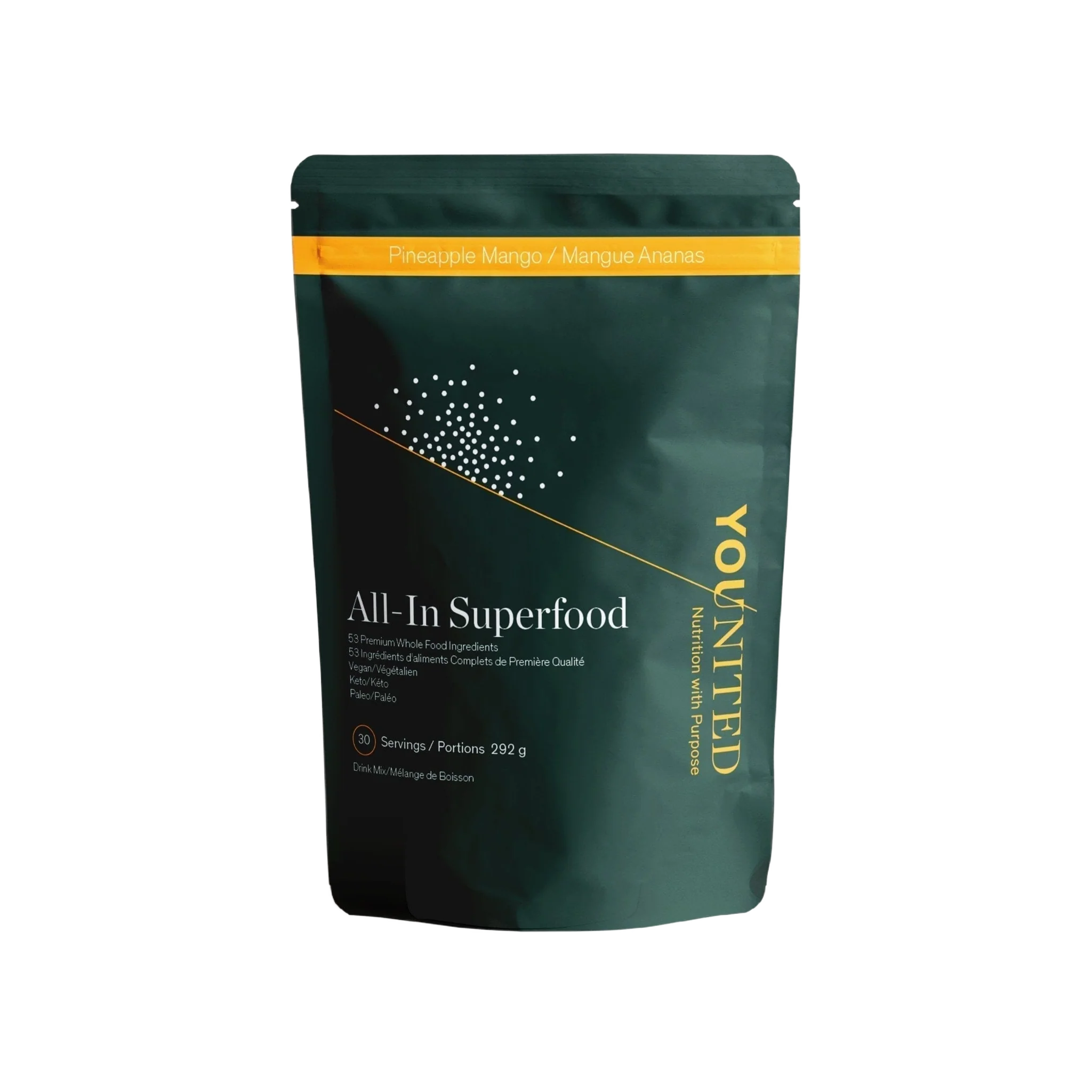 Our All-In Superfood is just that – All-In! Each scoop contains 53 organically grown land & sea veggies, super fruits, mushrooms, and herbs, and provides the antioxidant equivalent of 6-8 servings of fruits and vegetables.